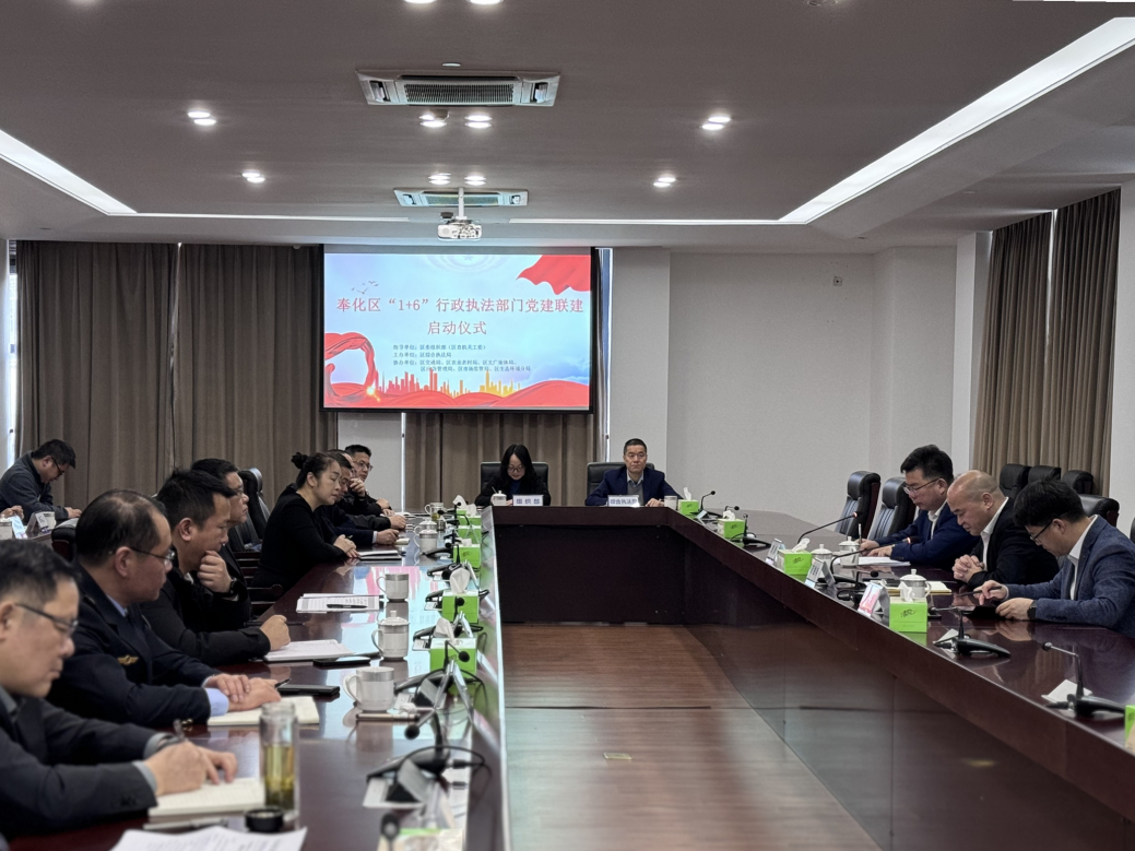 近日,奉化区“1+6”行政执法部门党建联建启动仪式在政务服务中心举行。这不仅是我区推进“大综合一体化”行政执法改革的一次深化探索,更是以机关党建为引领,驱动多部门携手,共绘营商环境新画卷的生动实践。
