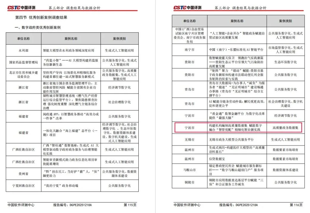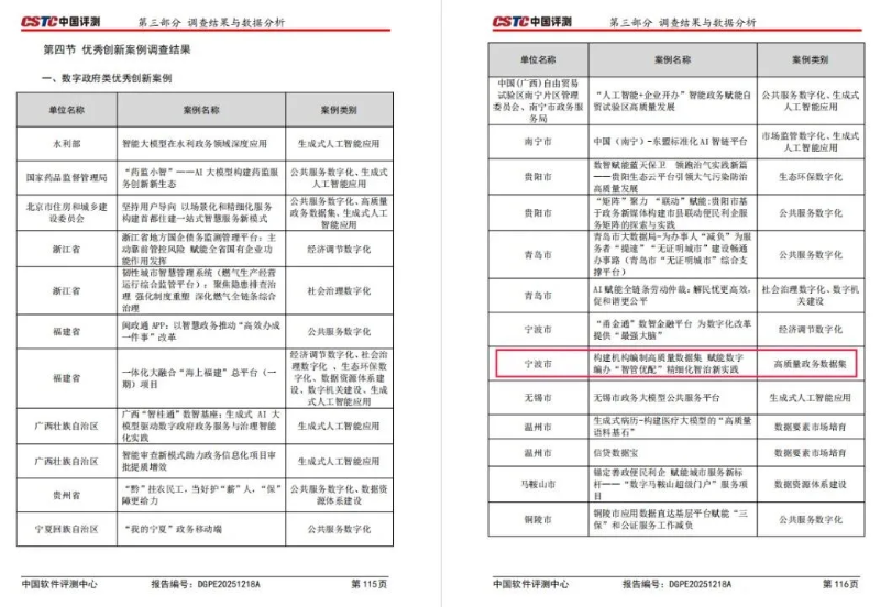 近日,2025年数字政府服务能力暨第二十四届政府网站创新发展调查研究总报告正式发布,宁波市委编办《构建机构编制高质量数据集 赋能数字编办“智管优配”精细化智治新实践》成功入选全国数字政府优秀创新案例并全文收录案例选编,标志着我市在机构编制领域的数据治理与创新应用已跻身全国前列。