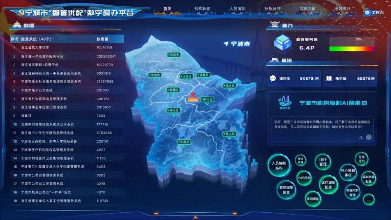 目前,宁波市机构编制高质量数据集已成功赋能机构编制智能决策、履职分析、政策研究等多项业务场景,结合配套制定的《机构编制高质量数据集建设规范》,形成了可复制、可推广的制度规范与技术路径,对全国同类地区推进政务数据集建设具有重要的借鉴意义和推广价值。